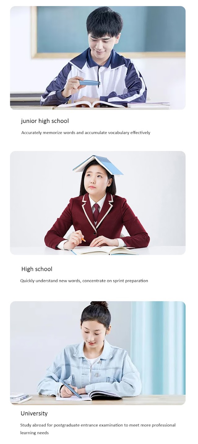 It reads text out aloud with American English, British English, French, and Spanish human-like digital voices. It also features embedded first-tier junior and academic dictionaries for immediate access to word definitions, a function allowing storage of text captured from textbooks, and a voice memo function.